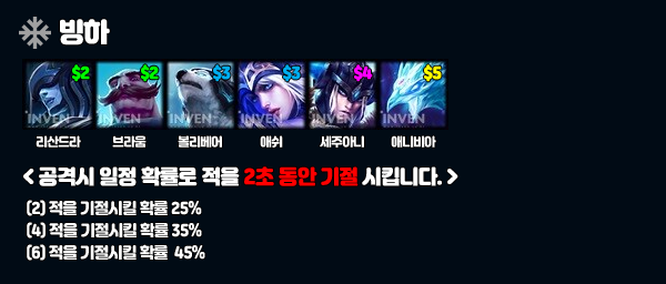 └ + 쇠사슬 조끼 = 얼어붙은 심장 : 인접한 적들의 공격속도 20% 감소
